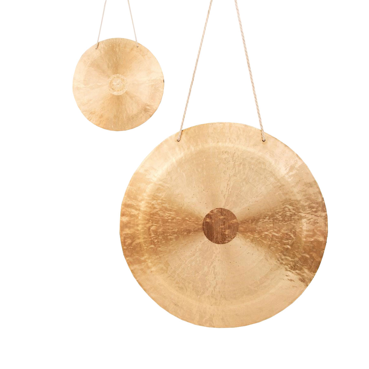 Die Gongs haben jeweils 2 Lochbohrungen und sind mit einer Kordel zum Aufhängen versehen.