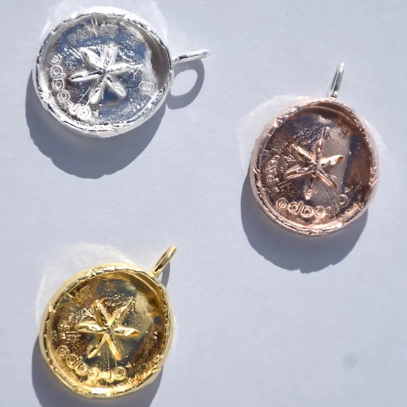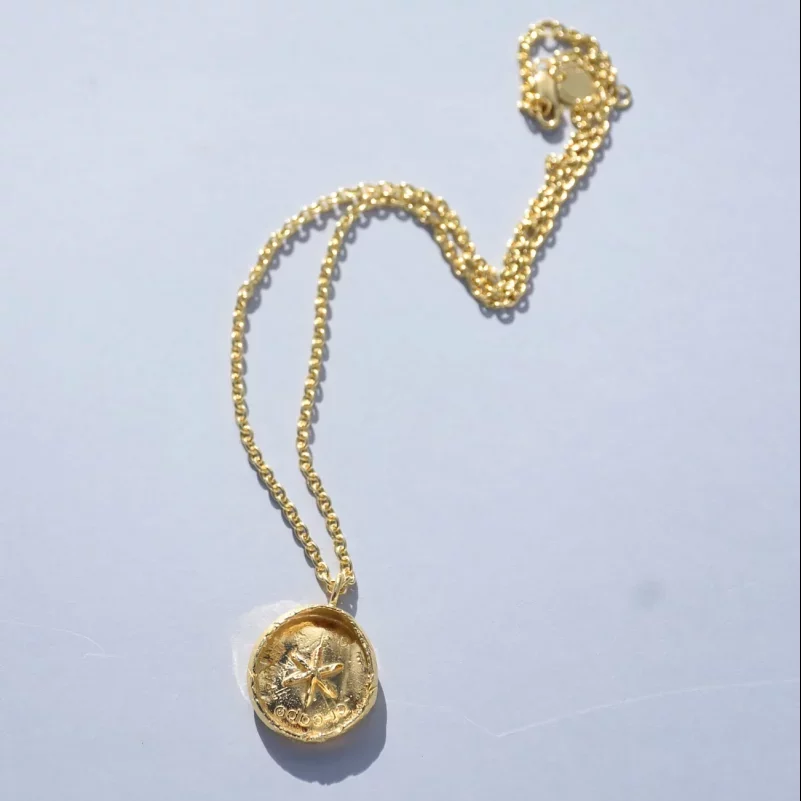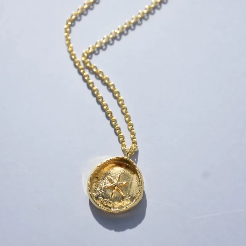 OCEAN COIN PENDANT WITH RAW TEXTURE AND STARBURST MOTIF