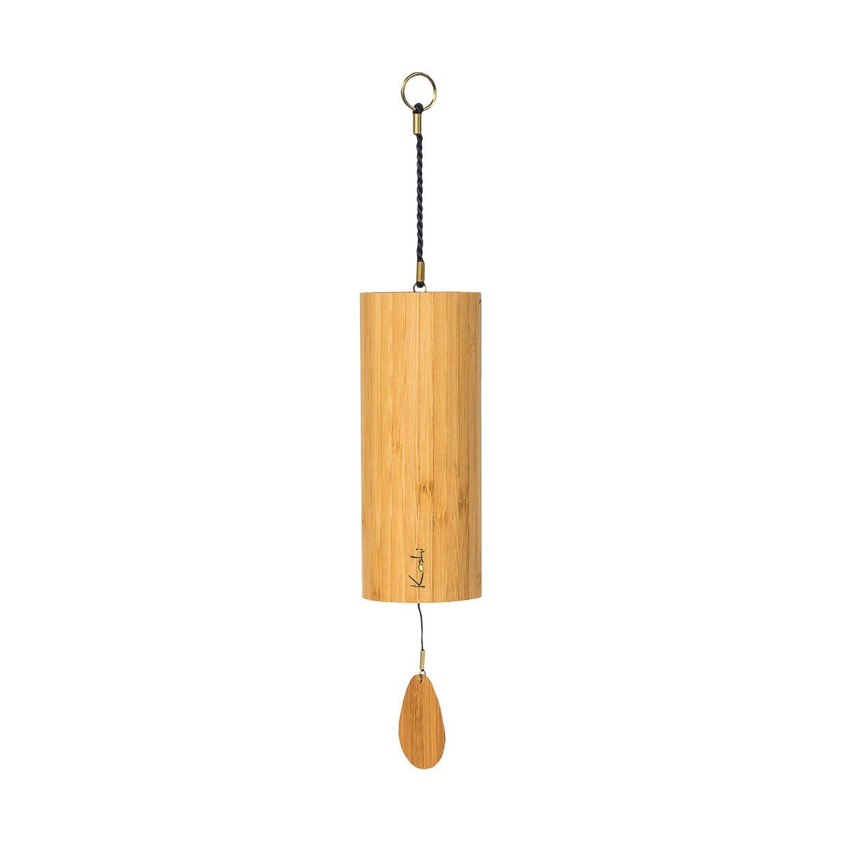 Sobald das Koshi Klangspiel in Schwingung gerät, berührt ein kleines Plättchen im Inneren des Klang-Zylinders sanft acht unterschiedlich lange Stäbe, die am Boden des Klang-Zylinders im Kreis angeordnet sind.