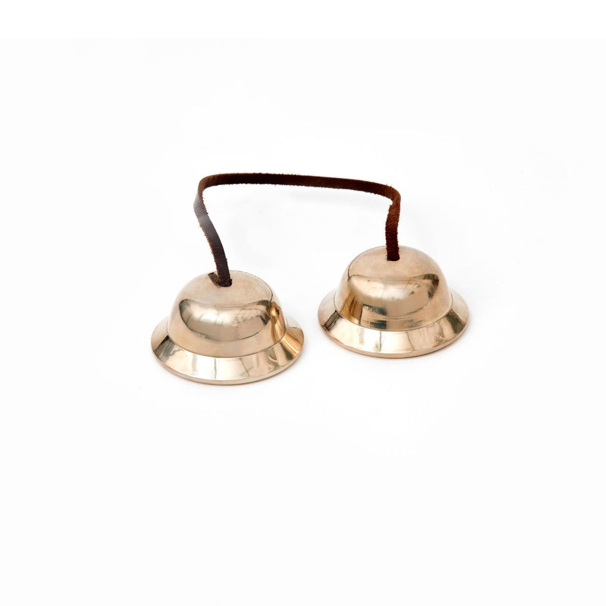 Einsatzbereich: Drittes Auge, Scheitelchakra. Besonders klarer und langanhaltender Ton. Hoch-glänzend poliert. Die Zimbeln sind mit einem Lederband verbunden.